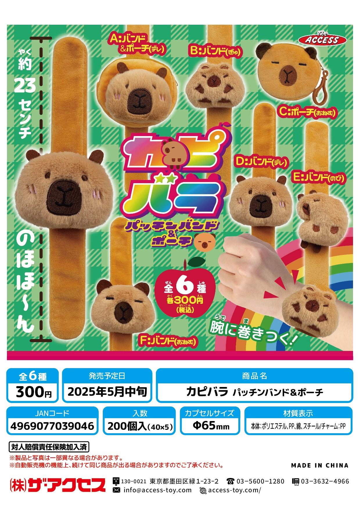An adorable collection of plush slap bracelets and a mini pouch featuring a cute capybara! Simply tap the bracelet against your wrist and it instantly wraps around for a snug fit.
